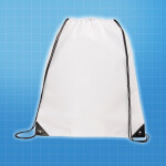 210D Polyester Drawstring Backpack white with black cords and reinforced corners. Print area 200mm x 250mm - Overall bag size 340mm x 43mm